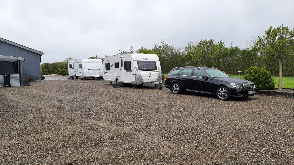 Vi havde stillet campingvognen hos Leif og Anette, allerede da vi kørte hjem fra træffet på Grønhøj strand,