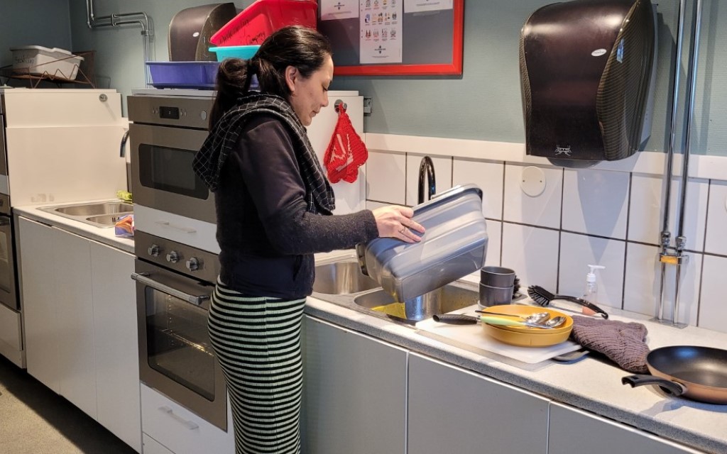 Om aftenen havde vi købt mad ind, som vi sammen grillede og spiste i opholdslokalet ved køkkenet.