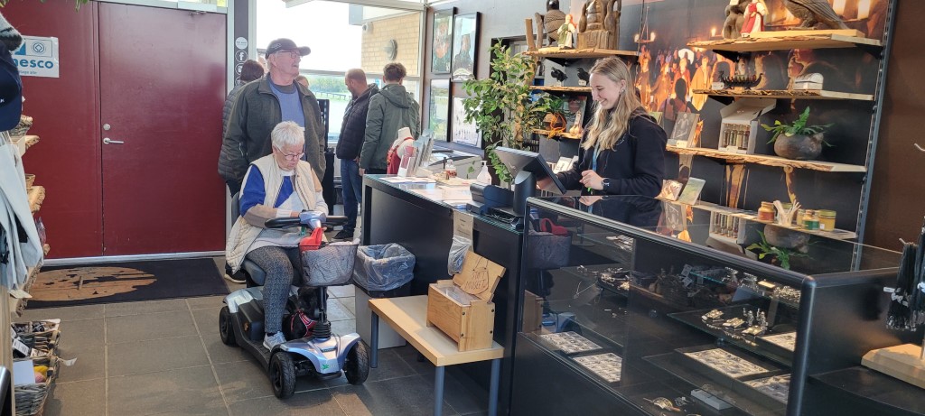 Lørdag aften hentede vi mad udefra, som vi spiste samlet i lokalet på campingpladsen.