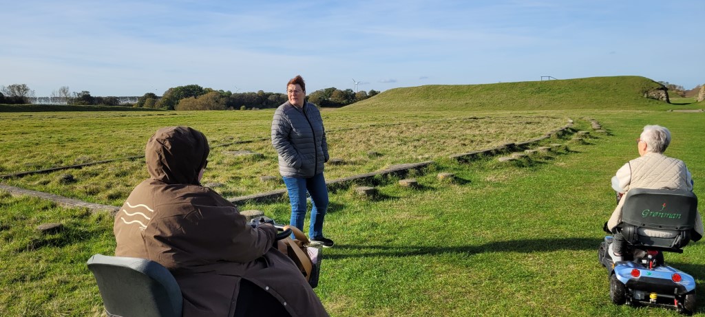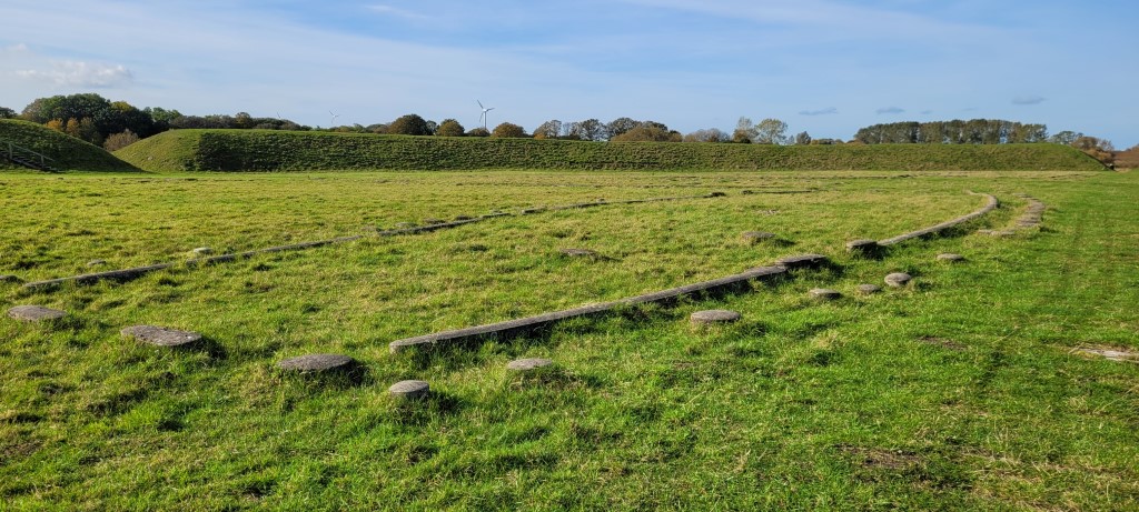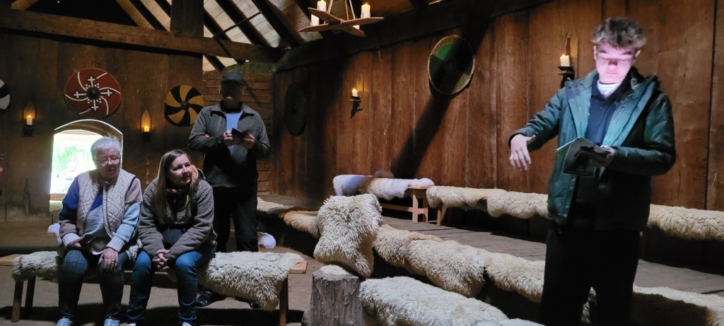Lørdag tog vi til Vikingeborgen Trelleborg, hvor Lucas guidede os rundt og fortalte om borgen.