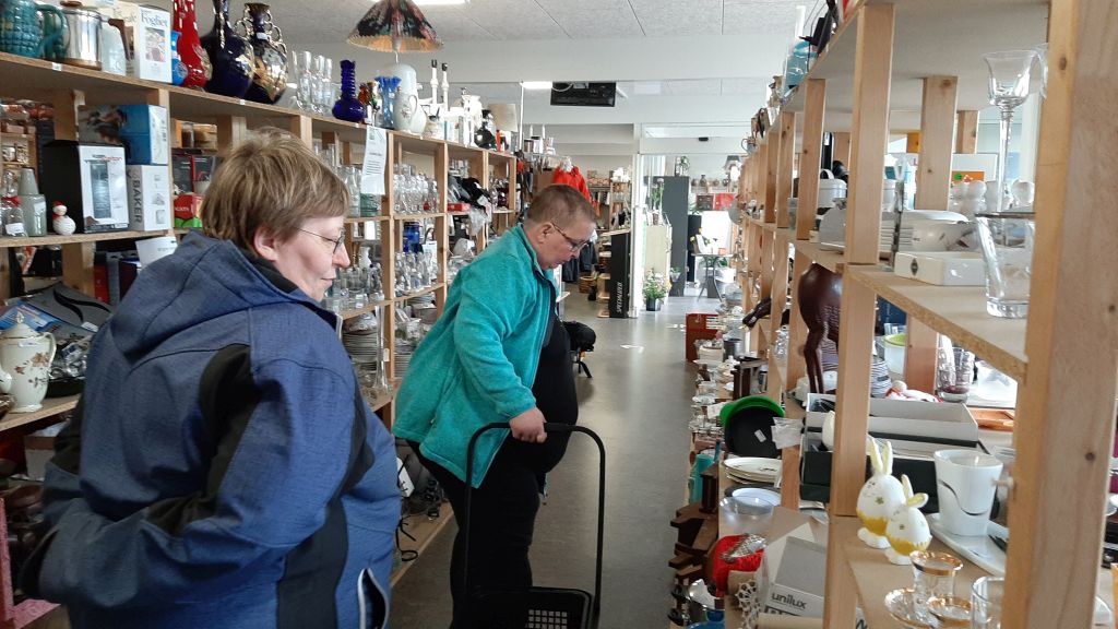 Fredag formiddag gik turen til Hjørring, hvor vi bla. var inde i "Guld og rod" (en loppe butik) og alle fik handlet lidt ind.